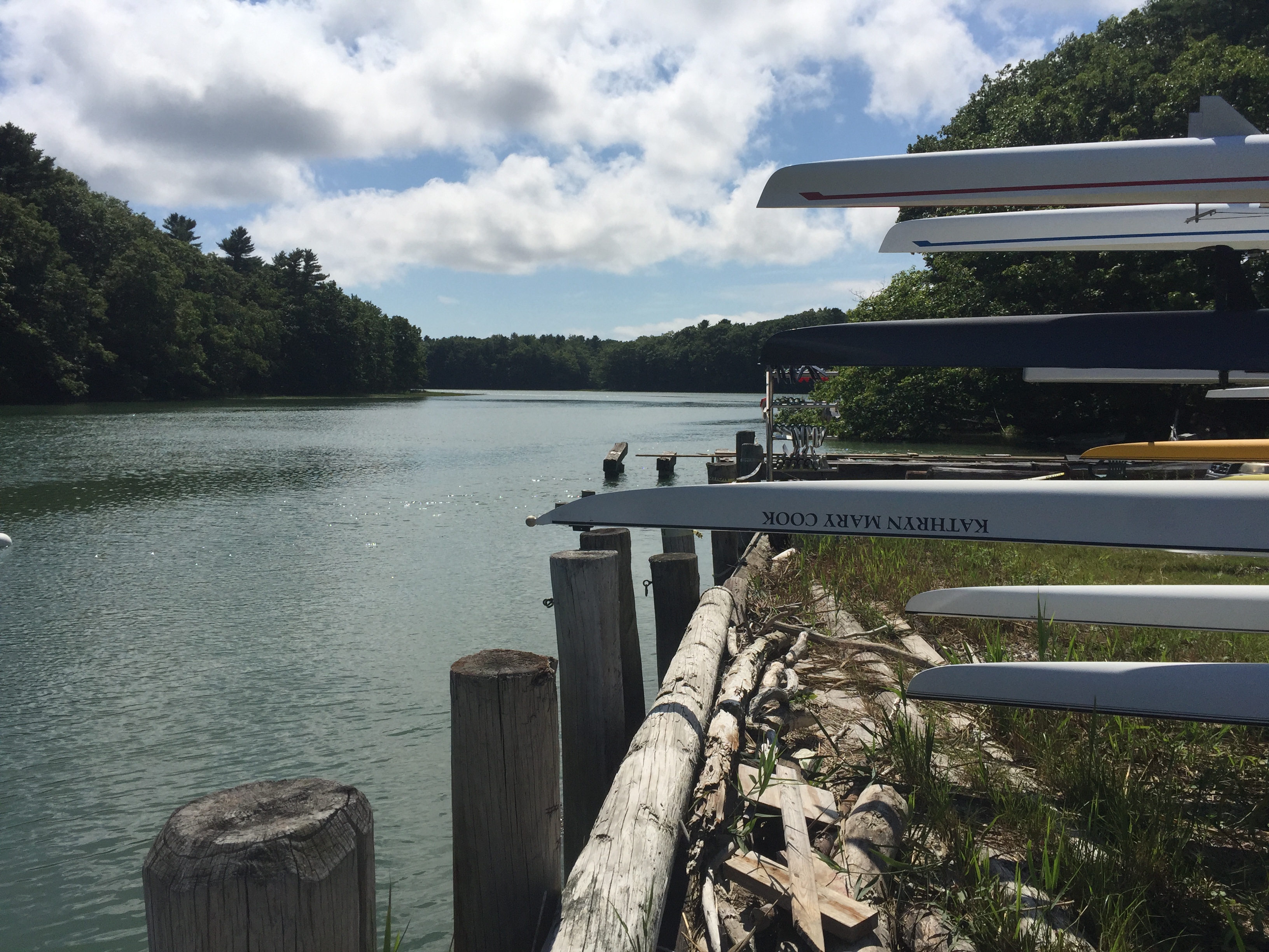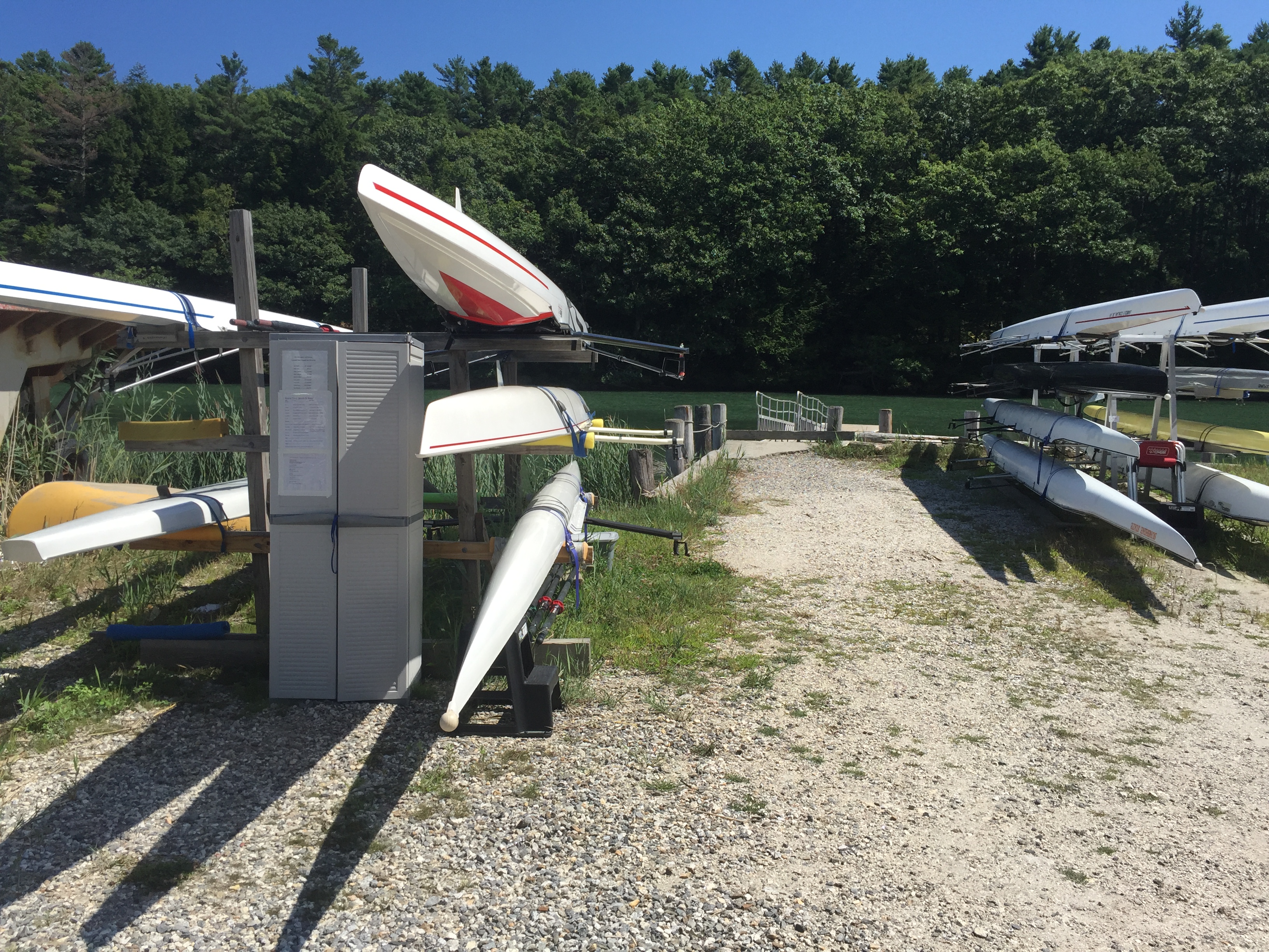 We have two boat racks, one for club fours and a second one for smaller boats, an oar rack, and a dock. The Cousin’s River is tidal and is unrowable for two hours on either side of low tide.